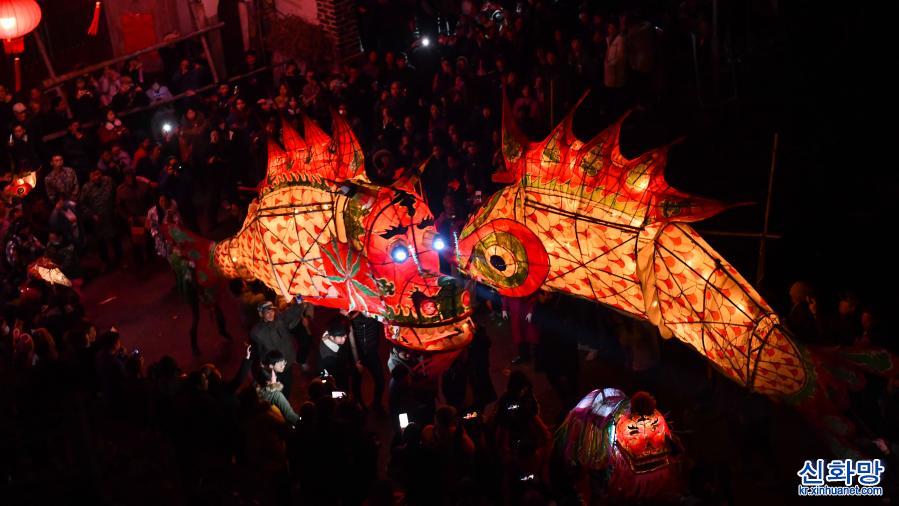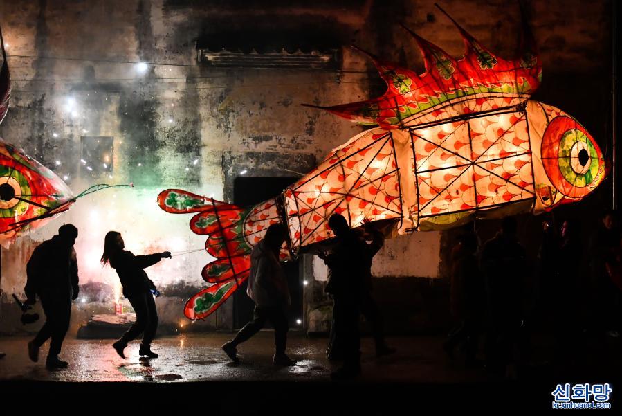 정월 대보름을 맞아 안후이성 황산시 서(歙)현 시터우(溪頭)진 왕만톈(汪滿田)이 마련한 어등(魚燈) 놀이 행사에 많은 여행객과 인근 주민들이 와서 감상했다. 새해의 길운과 풍년, 풍요를 기원하는 지역의 독특한 민속 행사인 어등 놀이는 600여년의 역사를 가지고 있다.[촬영/신화사 기자 한쉬(韓旭)]