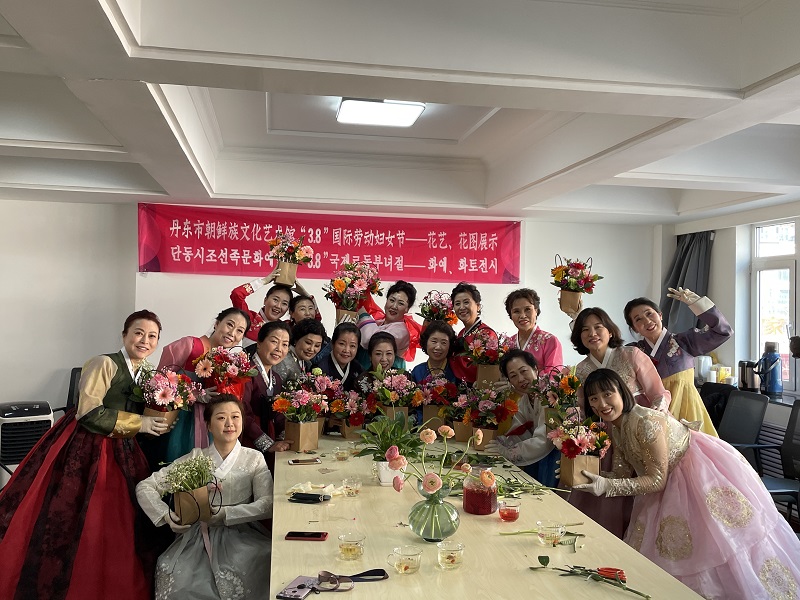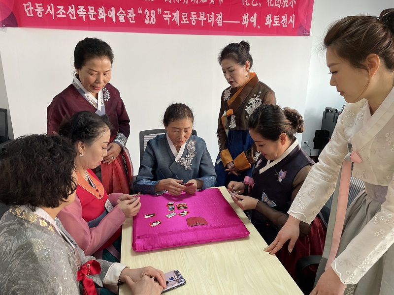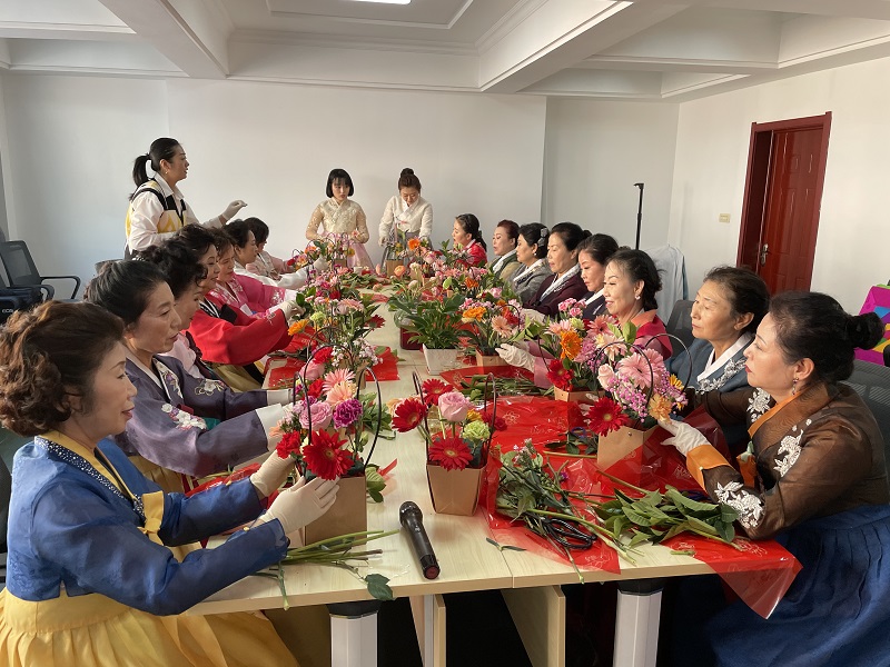 소규모로 진행된 이날 행사에서 조선족 녀성들은 한복을 곱게 차려입고 ‘꽃노래 듣기’, ‘꽃바구니 만들기’, ‘화투 치기’, ‘꽃차 마시기’ 등 다양한 내용을 체험했다.