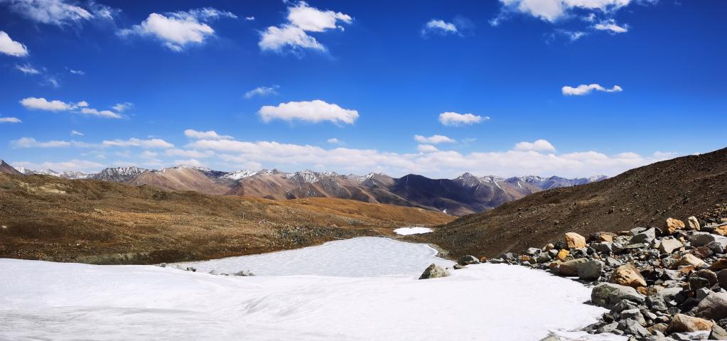 중국 시짱(西藏)자치구 중부에 위치한 충무강르(窮母崗日)봉은 해발 7천48m다. 봉우리 아래 거대한 얼음호수가 지난 24일 햇빛 아래 반짝이며 눈부신 조화를 이루고 있다.