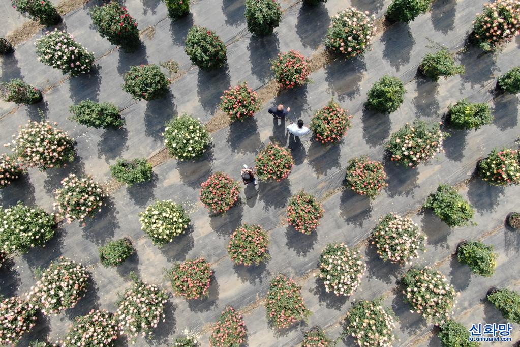 5월9일 여행객이 싱타이 경제개발구 허후이촌 월계화꽃밭을 구경하고 있다. (드론 사진) 허베이 싱타이 경제개발구 안에 월계화, 장미가 활짝 피면서 꽃구경에 나선 나들이객들의 발걸음이 이어지고 있다. 최근 몇 년간 싱타이 경제개발구는 농업 산업 구조를 조정, 꽃놀이와 다양한 업태를 융합하고 농촌 관광 아이템을 다각화해 농촌 활성화에 힘을 보태고 있다.[촬영/뤄쉐펑(駱雪峰)]