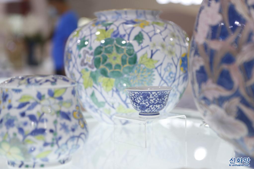 5월9일 소비재박람회에 전시된 도자기. 제1회 중국국제소비재박람회는 기업의 소비품 거래 플랫폼이자 문화 전시 교류 플랫폼이기도 하다. 소비재박람회에 전시된 많은 국내 상품은 짙은 중국 문화의 향기를 담고 있다.[촬영/신화사 기자 딩훙파(丁洪法)]