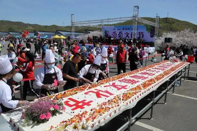 개막 당날, 포도성광장에서 길이 8미터, 폭 1.2미터의 거대한 케이크가 눈길을 끌었는데 포도, 딸기, 블루베리, 키위 등 신선한 과일로 장식됐다.