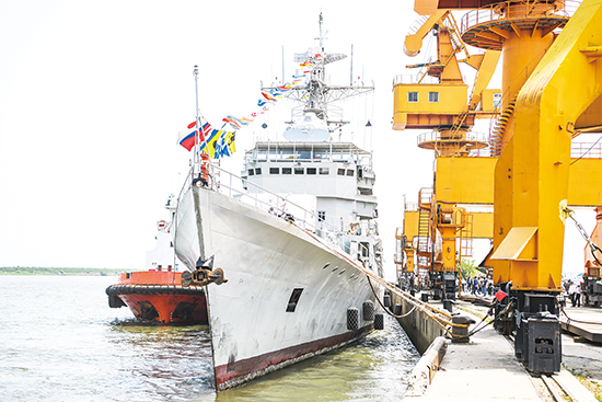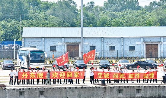 6월9일 10시 20분, 취역 36년 만에 단동함(丹东舰)이 랑두(浪头)항 부두에 정박, 단동으로 귀환했다.