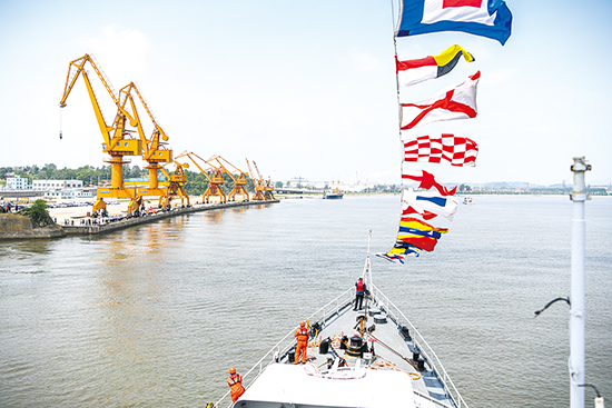 단동함은 퇴역 당일 해남 삼아에서 출발해 20여일 동안 해상 예인을 거쳐 남해, 동해, 황해를 경유해 압록강 입구를 통해 랑두항에 입항했다. “단동함”은 단동 시민들의 기대 속에서 3,600 해리를 항해했다.