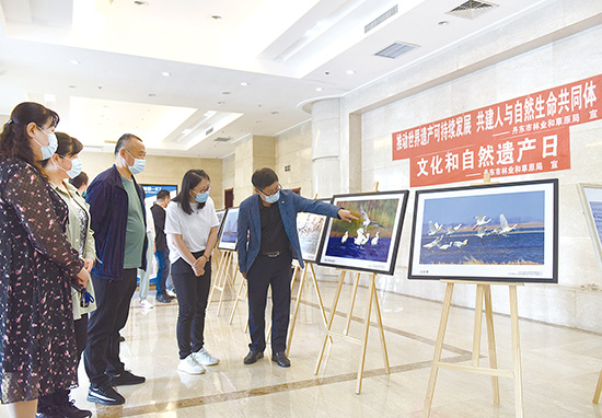 련일, 단동시임업및초원국은 “세계유산의 지속 가능한 발전을 추진하여 인간과 자연의 생명공동체를 함께 구축하자'는 주제로 문화와 자연유산일 선전활동을 전개했다. 이는 압록강구습지 국가급 자연보호구를 전시하여 시민들의 자연유산 보호의식을 높이는데 그 목적이 있다. 기자 오경 찍음