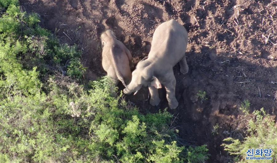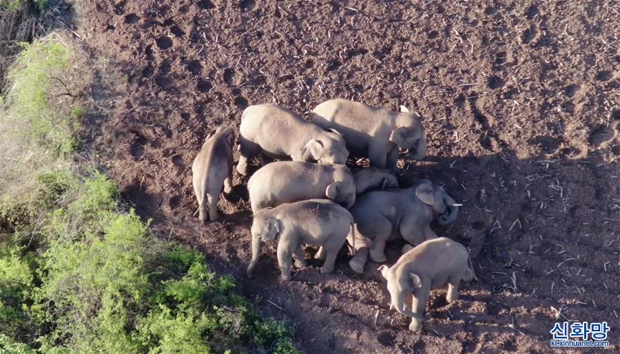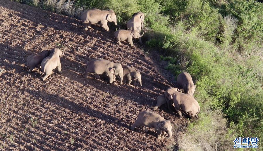 6월20일 윈난(雲南)성 위시(玉溪)시 어산(峨山)현에서 촬영한 코끼리떼(드론 촬영 영상 화면캡쳐).
