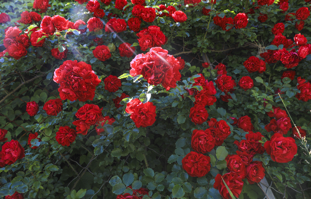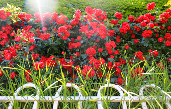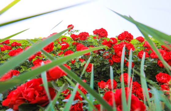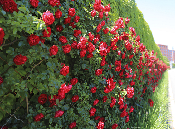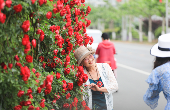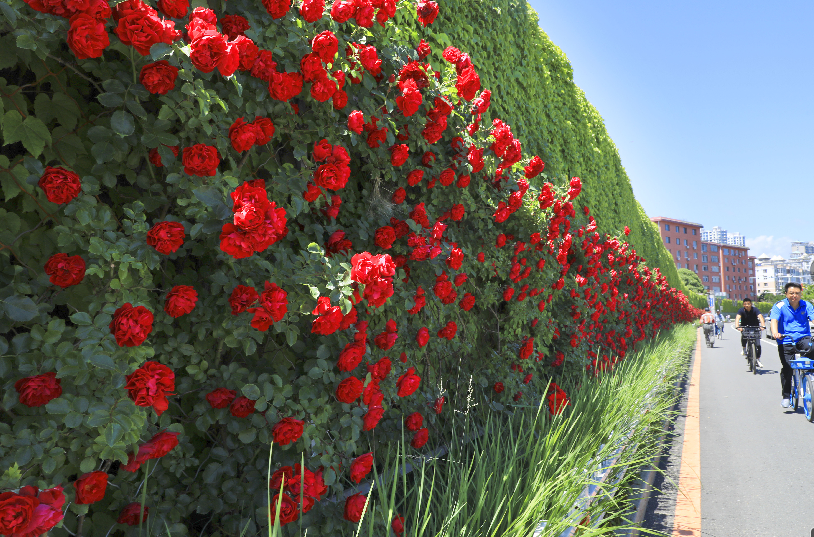 6월 15일, 빈강중로(滨江中路) 11번 홍수방지댐 문 앞 부근으로 장미가 온통 화분대를 메웠는데 수백미터에 달하는 빨간 장미꽃이 차례대로 피여났고 빨간 꽃이 푸른 잎에 돋보여 그 현란함과 눈부심이 더 이를데 없었다.