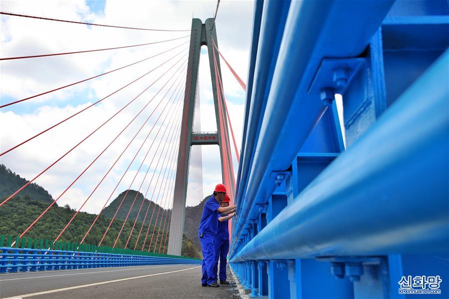 이미 준공된 쭌이-위칭 고속도로 샹장(湘江) 대교(6월26일 촬영, 드론 사진) 중국철도 광저우국 등이 건설한 구이저우성 쭌이(遵義)-위칭(餘慶) 고속도로의 준공∙개통이 임박했다. 노선의 총길이가 93km인 쭌이와 위칭을 잇는 고속도로가 개통된 후 쭌이와 위칭의 이동 시간은 기존의 3시간에서 약1시간10분으로 단축된다.[촬영/류쉬(刘续) 기자]