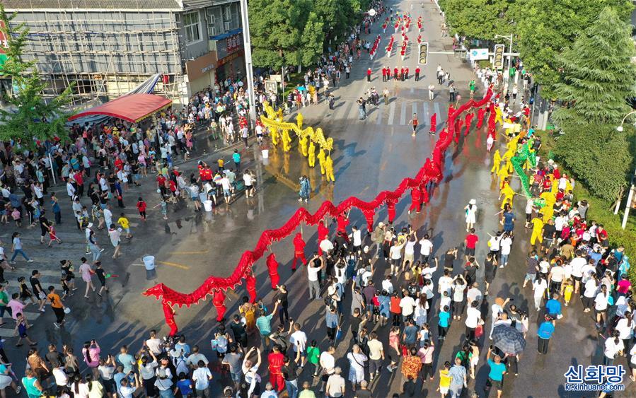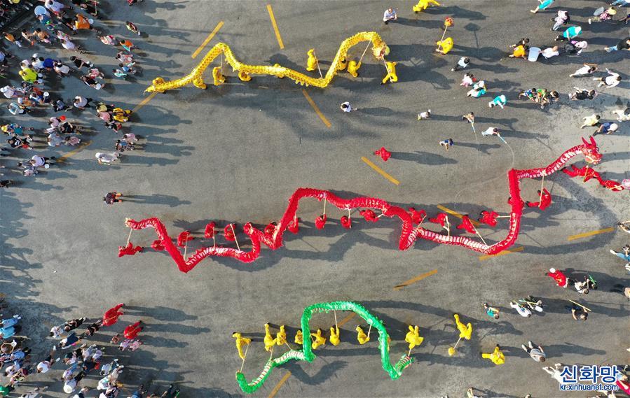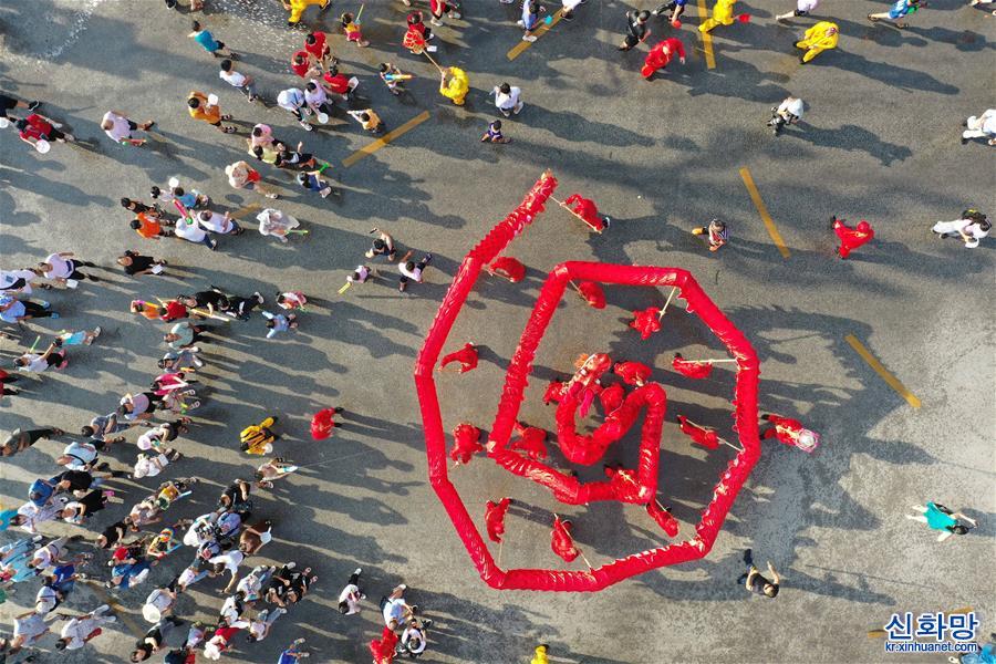 △15일 젠허현에서 드론으로 촬영한 전통 명절 ‘6∙6’ 행사 현장