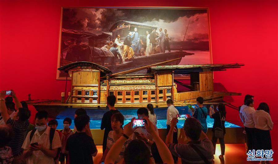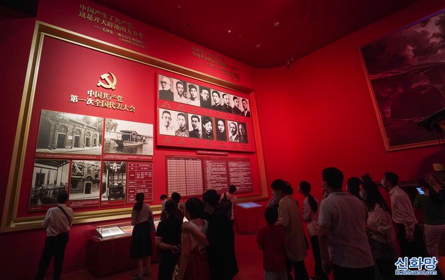 7월15일 관객들이 중국공산당 역사전람관에서 '초심을 잃지 않고 사명을 명기하자' 주제의 중국공산당 역사 전시를 참관하고 있다. 7월15일부터 중국공산당 역사전람관은 공식으로 일반인에게 오픈됐다. [촬영/신화사 기자 천예화(陳曄華)]