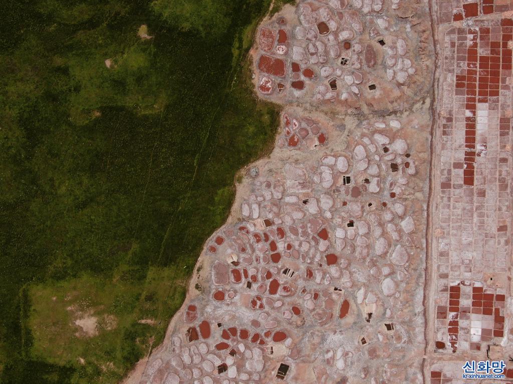 칭하(青海)성 위수(玉樹) 짱족자치주 낭첸(囊謙)현 바이자(白扎)향에 위치한 바이자 염전은 수 백 년의 역사를 가지고 있으며, 지금도 옛날 제염(製鹽) 기술을 그대로 유지하고 있다. 소금을 말리는 계절에 접어들면서 하늘에서 내려다 본 염전 풍경은 마치 총천연색 팔레트를 펼쳐 놓은 듯 하다.[촬영/신화사 기자 장룽(張龍)]