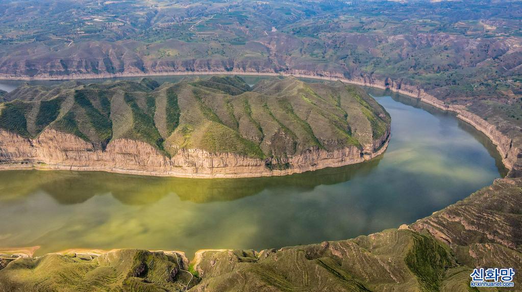 21일 네이멍구 준거얼(准格爾)에서 드론으로 촬영한 황허(黃河) 대협곡 풍경.
