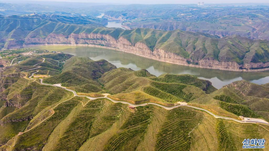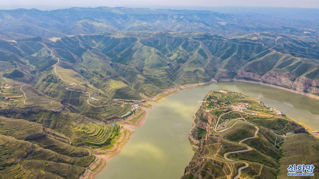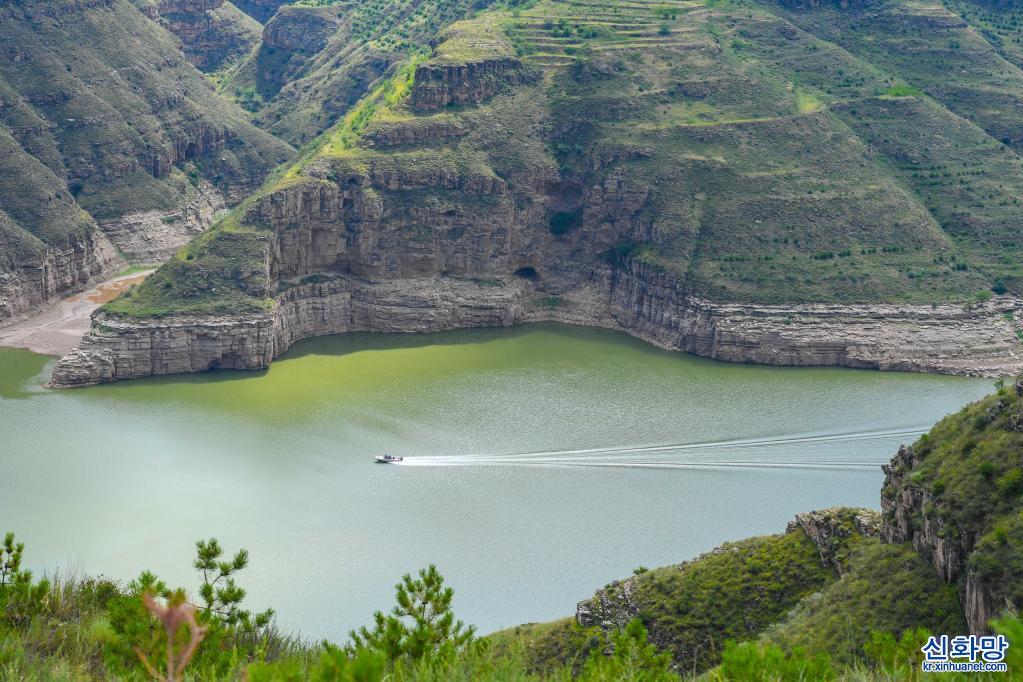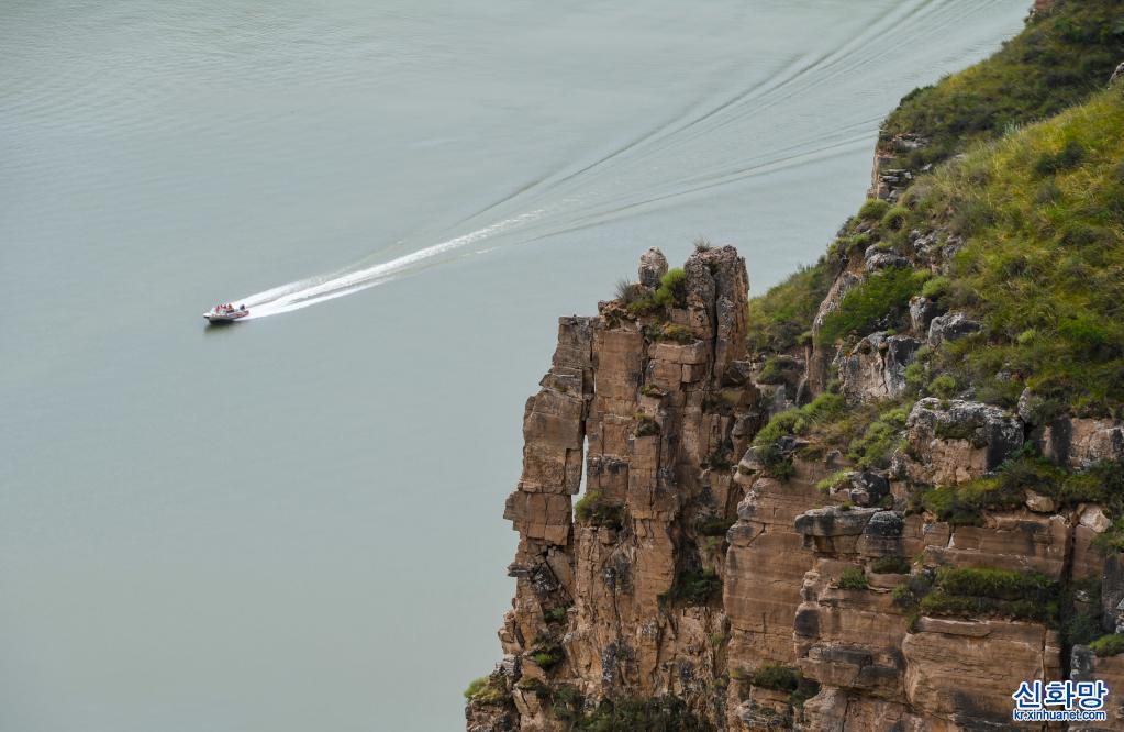 여름철, 황허 대협곡은 양안에 깎아지른 듯한 절벽이 펼쳐져 있고 강 중앙에는 푸른 물결이 넘실대며 빼어난 절경을 연출하고 있다. [촬영/신화사 기자 펑위안(彭源)]