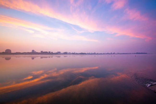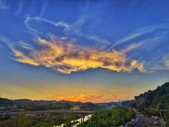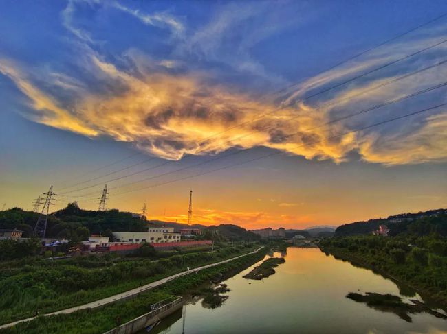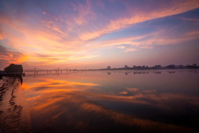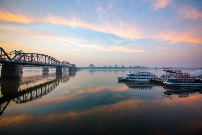 압록강변 단동의 하늘가를 붉게 물들인다.