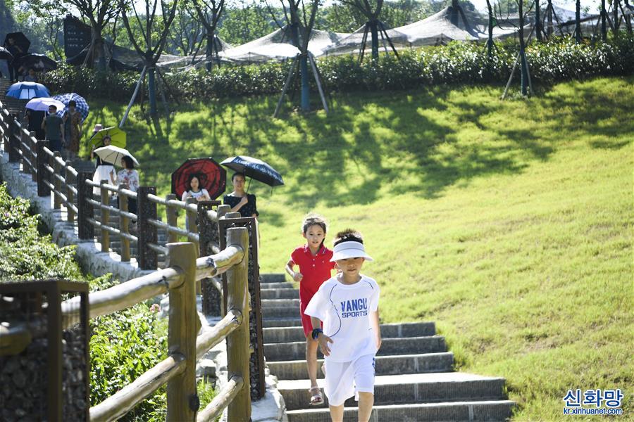 20일 충칭 퉁뤄산 광산공원에서 관광객들이 유람하고 있다.