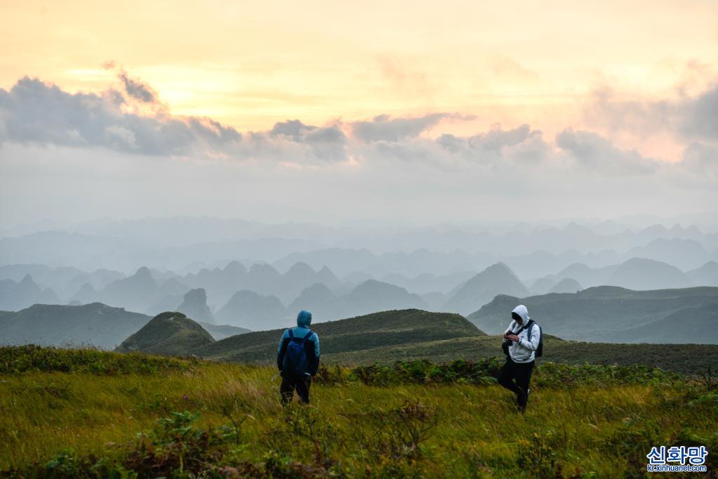 구이저우성 허장현의 한 관광지를 찾은 관광객이 경치를 감상하고 있다.(9월3일 촬영)