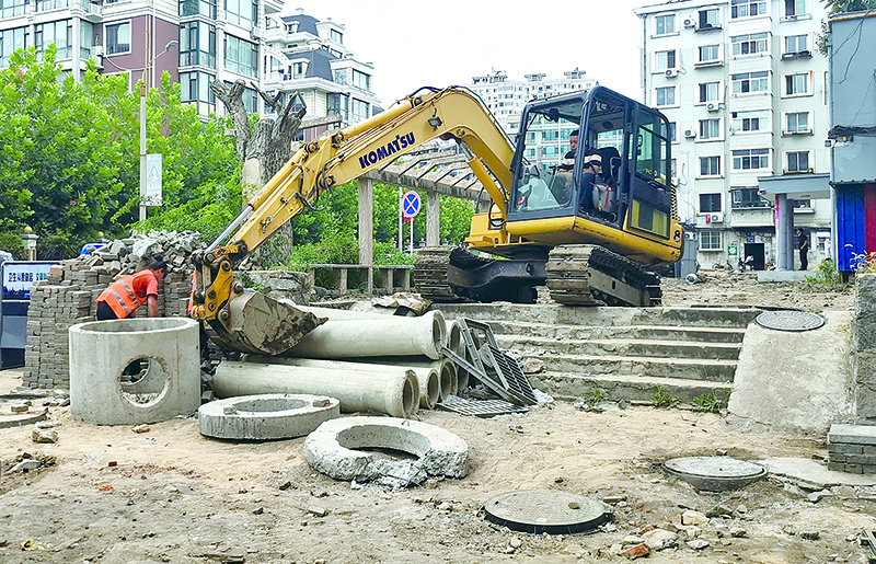 사진은 9월 6일, 보산가두(宝山街道) 5호 아파트 앞에서 로동자들이 시공을 다그치고있는 장면이다.