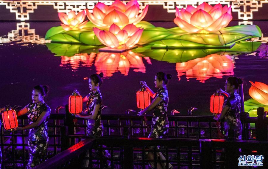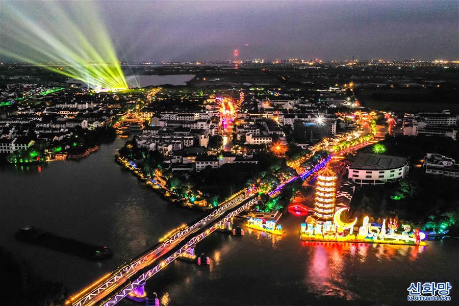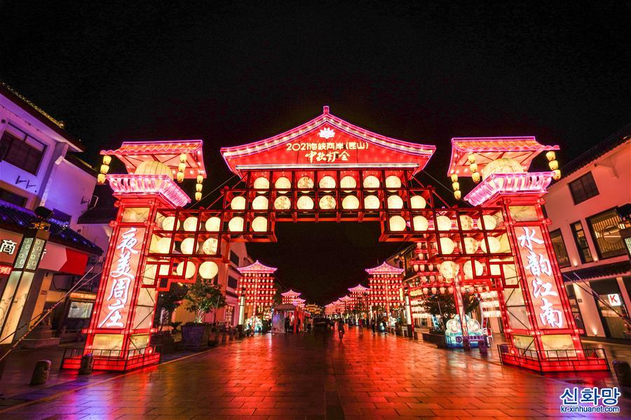 16일 장쑤(江蘇)성 쿤산(昆山)시 저우좡(周莊)진에서 2021 해협양안(쿤산) 중추절 등불축제 점등식이 열렸다. 중추절을 맞아 열린 이번 축제는 전통 색등과 디지털 조명 기술을 통해 만든 다양한 등을 선보인다.[촬영/신화사 기자 양레이(楊磊)]