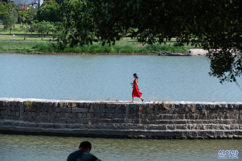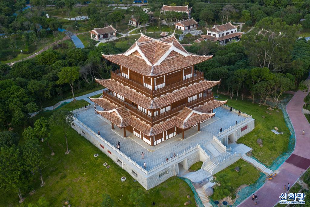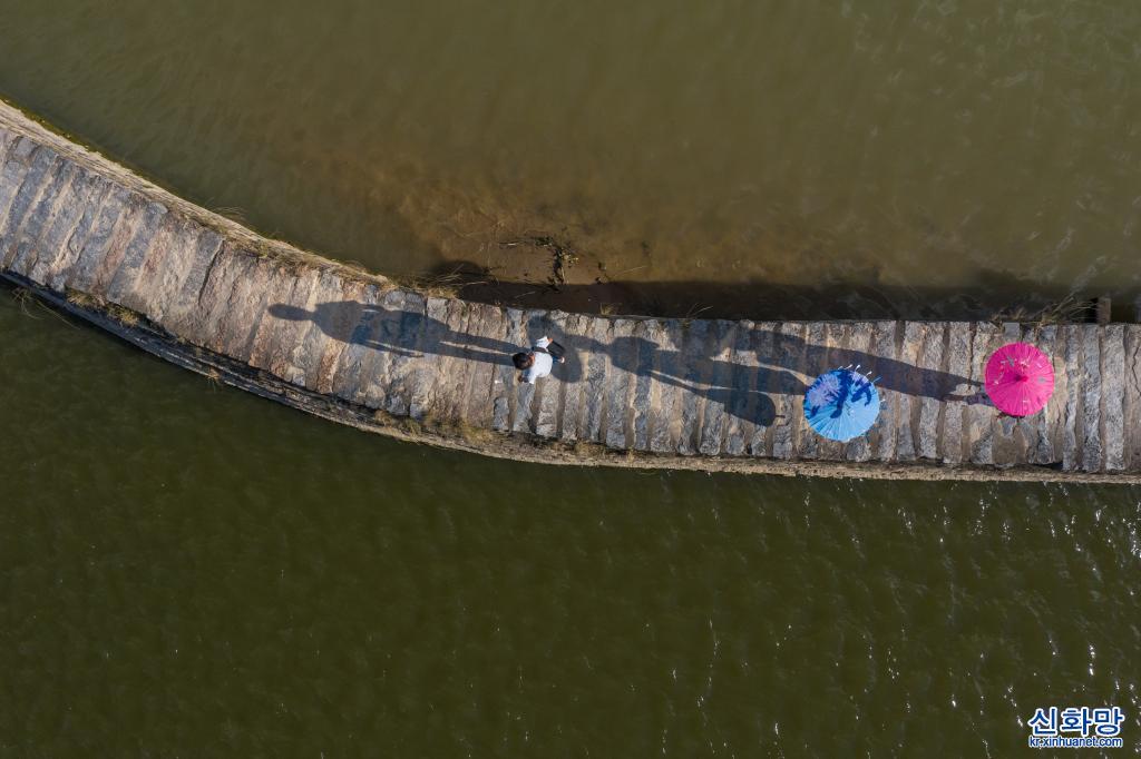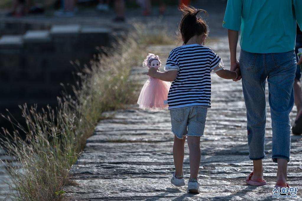 7일 푸젠성 푸톈시 서우시공원 장원각에서 시민들이 연휴 마지막 날을 즐기고 있다. (드론 사진)