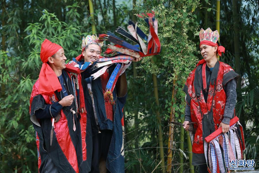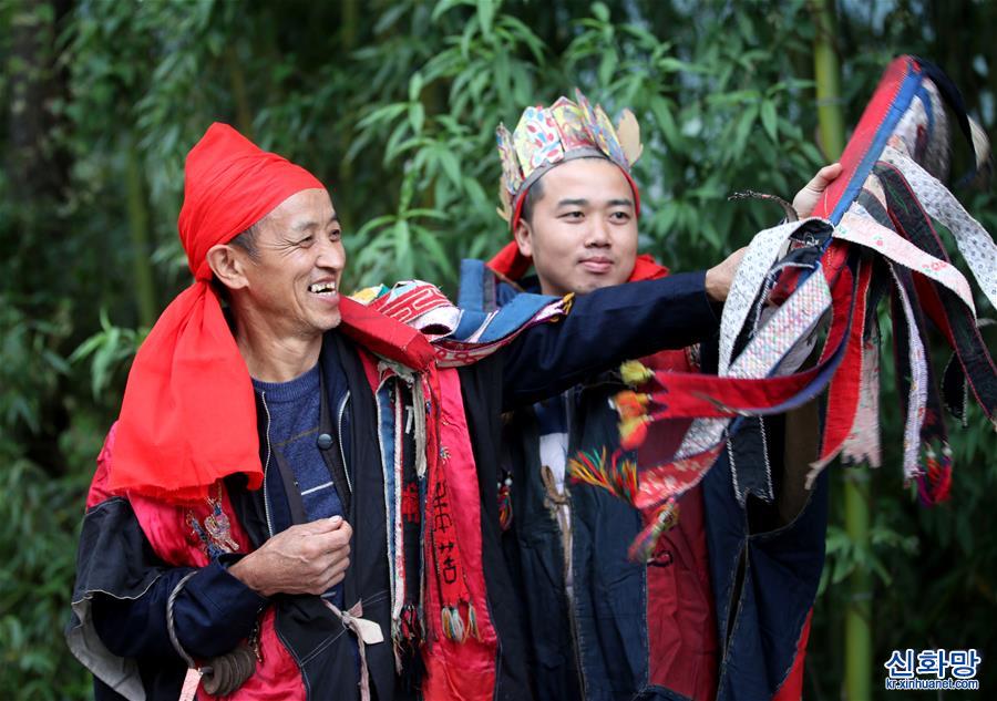 중국 구이저우성 먀오족둥족자치구 천궁(岑鞏)현 전통 민속가면극 ‘나희’[儺戱∙천궁현의 옛 이름이 쓰저우(思州∙사주)여서 ‘사주나희’라고 함]는 유구한 역사와 민족∙지방적 특색을 지니고 있으며, 2005년 구이저우성 1기 성급 무형문화유산에 등재됐다. 천궁(岑鞏)현 핑좡(平莊)진 핑좡촌에 사는 샤오광화(肖光華)는 12살때부터 부친을 따라 ‘나희’를 배우기 시작했고, 2020년에는 ‘나희’의 대표 전승인이 되었다. 그는 ‘나희’에 대한 열정과 사랑을 자신의 두 아들에게 전수할 뿐 아니라 제자들을 받아들이고 있다. 또한 나희의 공연 형식을 끊임없이 연구하고 혁신을 꾀하고 있다. 각급 정부가 문화를 중시하면서 ‘나희’는 전승과 보호를 받게 되었다. 그는 “중국적인 것이기도 하지만 세계적인 것이기도 한 나희를 대대로 전승해 더욱 찬란한 빛을 발하도록 하길 바란다”고 말했다.[촬영/신화사 기자 후판쉐(胡攀學)]