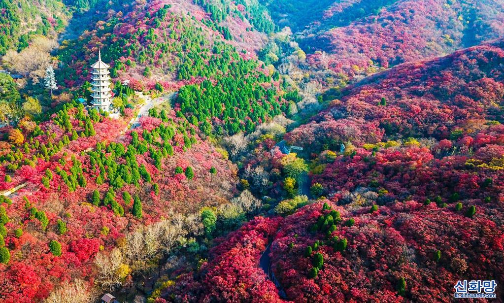 11월1일 지난시 단풍계곡에서 나들이객들이 단풍을 즐기고 있다. 산둥(山東)성 지난(濟南)시 남부 산간구역 단풍계곡에 울긋불긋 가을빛이 곱게 내려앉았다. [촬영/신화사 기자 주정(朱崢)]