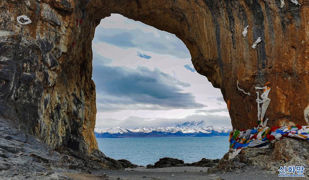 11월20일 휴대폰으로 촬영한 나무춰 웨량완. 시짱자치구 나취시 반거현 경내에 위치한 성샹톈먼(聖象天門∙성상천문)은 탕구라(唐古拉) 설산 및 나무춰(納木錯) 호수와 어우러져 태고적 신비를 간직한 천혜의 비경을 자랑한다.[촬영/신화사 기자 선훙빙(沈虹兵)]