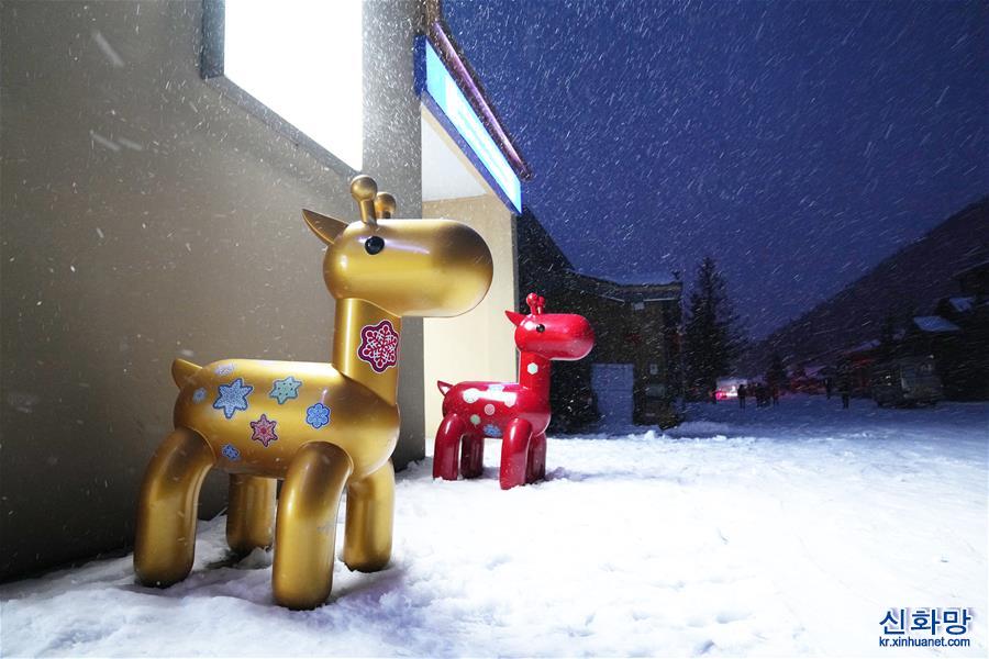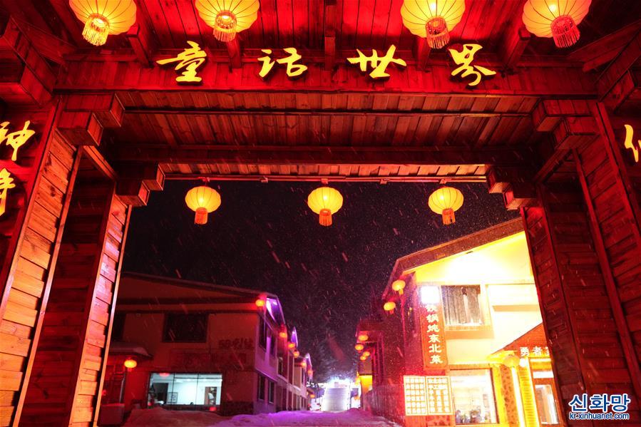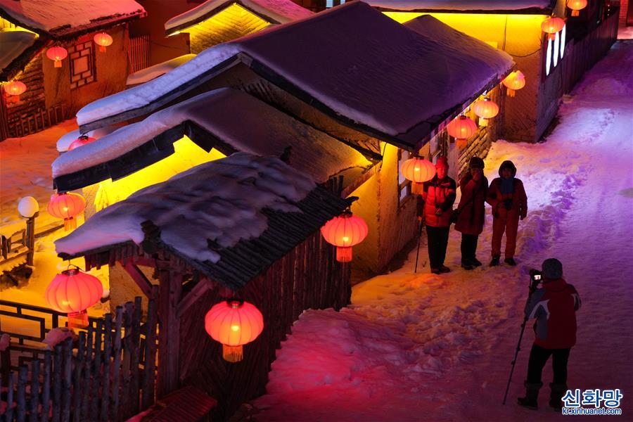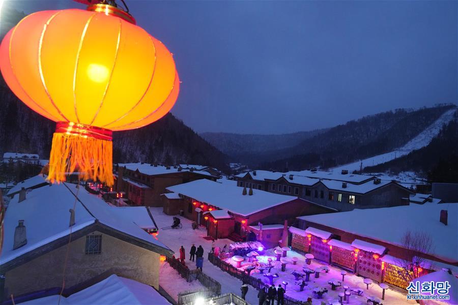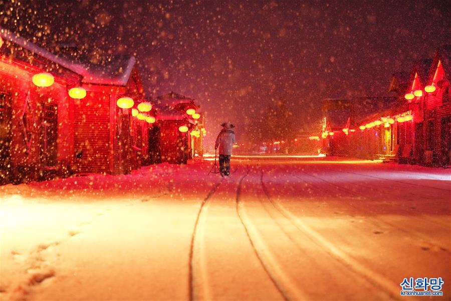 중국 헤이룽장성 따하이린(大海林)임업국 솽펑(双峰) 임업장은 겨울철 적설기가 약7개월에 달해 예로부터 ‘눈의 고장’으로 불린다. 통나무집과 하얗게 쌓인 눈이 눈커튼, 눈버섯 등 독특한 경치를 만들어내고, 눈이 내리는 밤 불빛 아래 눈송이가 흩날리는 풍경은 낭만적인 분위기를 자아낸다. [촬영/신화사 기자 왕젠웨이(王建威)]