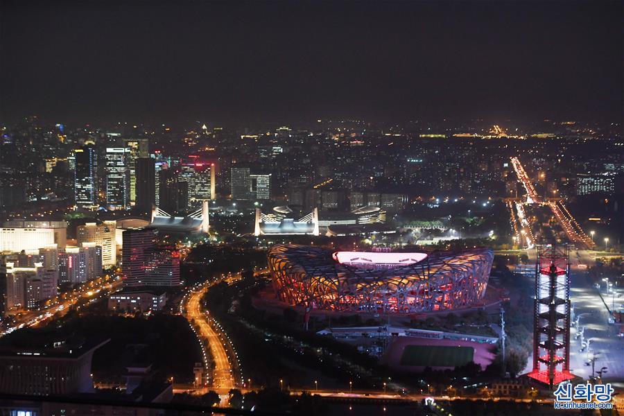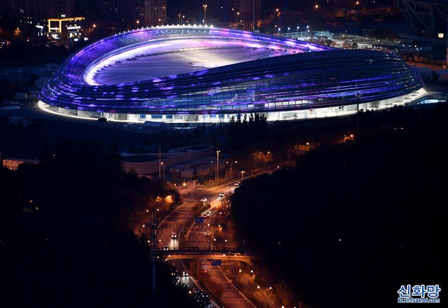 10월28일 촬영한 베이징 내셔널 스타디움 야경. 이날 베이징 동계올림픽∙패럴림픽 개∙폐회식이 열리는 내셔널 스타디움 ‘냐오차오(鳥巢)’ 개조 공사가 끝났다.[촬영/신화사 기자 장천린(張晨琳)]
