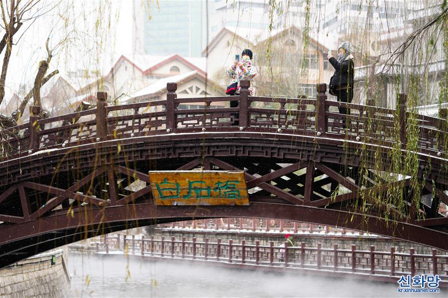 지난시 소재 바이스(白石)교에서 시민들이 경치를 감상하고 있다.