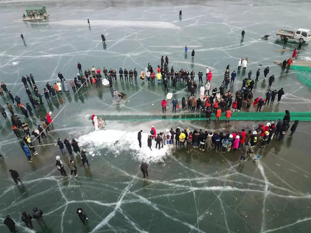 2022년 새해부터, 단동시 봉성시 란치진 대양하 얼음판에서 대규모 겨울철 물고기 잡이가 두 차례 진행되였다.