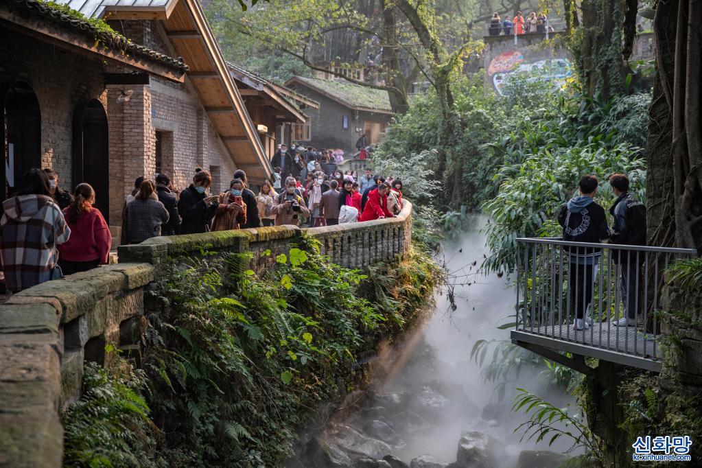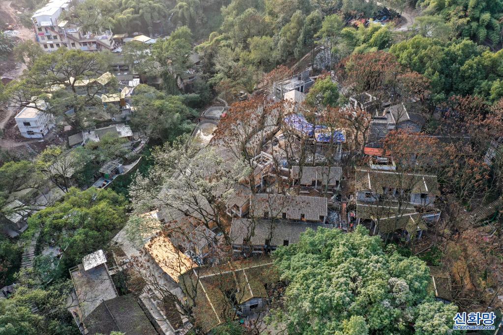 충칭(重慶)시 역사문화거리에 있는 금강비(金剛碑) 옛마을이 15일 간의 시범운영을 시작했다. 2017년 충칭시 베이베이(北碚)구 금강비 역사문화거리 복원 사업이 시작된 이후 지형과 물길 정비, 옛 골목길과 각종 문화재, 건축물의 수리와 보존 작업을 거친 금강비 옛마을은 고풍스러운 분위기를 그대로 간직한 채 관광, 휴양, 레저, 문화가 복합된 공간으로 새롭게 태어났다.[촬영/신화사 기자 황웨이(黃偉)]