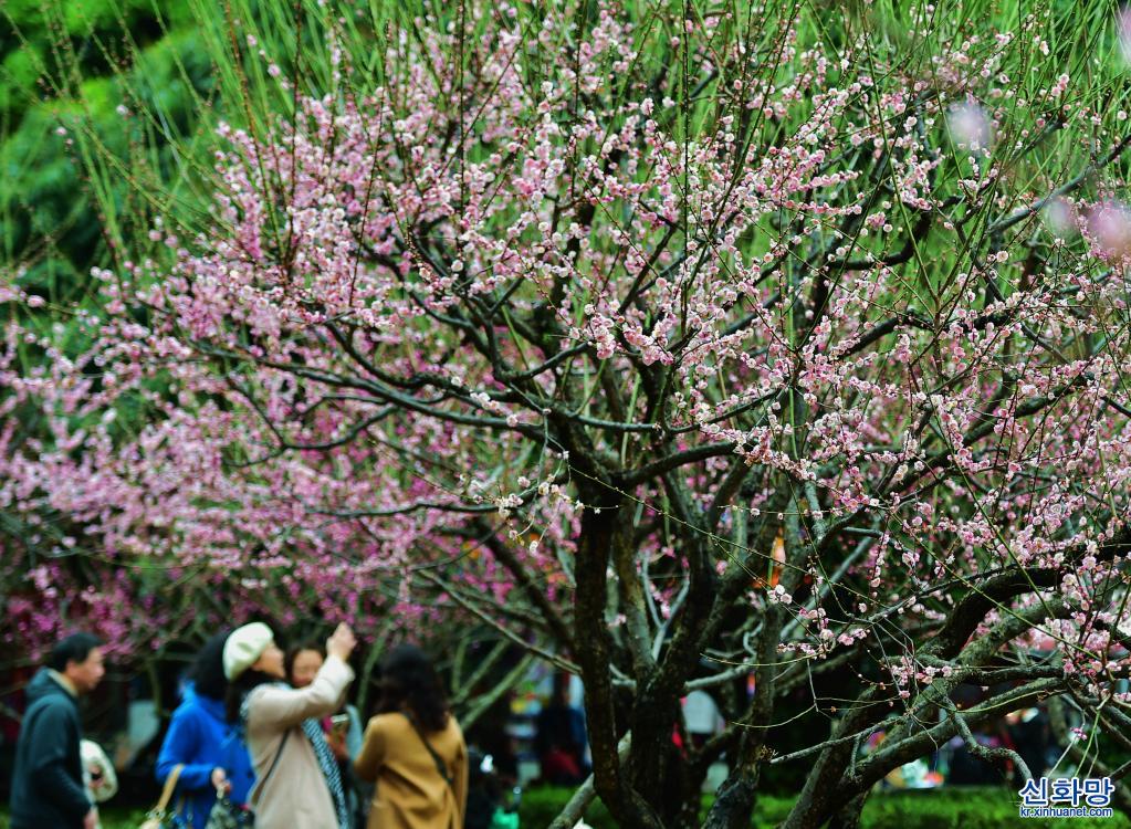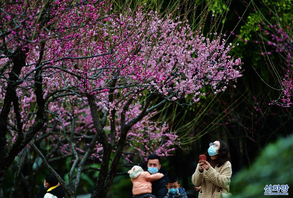최근 푸젠성 푸저우 시후공원 안의 매화가 꽃망울을 활짝 터트리면서 공원을 오가며 꽃을 감상하고 기념사진을 찍는 나들이객의 모습이 곳곳에서 포착됐다. [사진/웨이페이취안(魏培全) 기자]