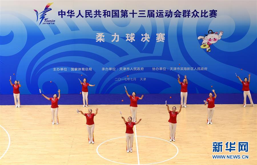 2017년 7월 3일 윈난(雲南) 대표팀이 톈진에서 열린 제13회 전국체전 단체경기 종목에서 공연하고 있다. [사진 출처: 신화망]