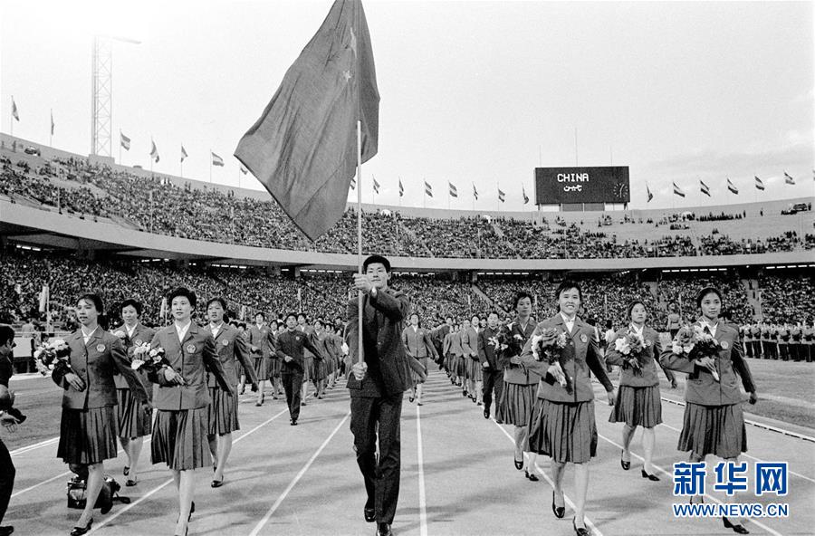 1974년 9월 16일 이란 테헤란에서 열린 제7회 아시안게임 폐막식에서 중국 선수들이 입장하고 있다. [사진 출처: 신화망]
