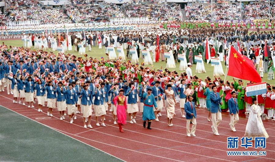 1986년 9월 20일 제10회 아시안게임 개막식에서 중국 선수들이 입장하고 있다. [사진 출처: 신화망]
