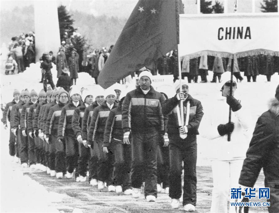 1980년 2월 13일 미국 레이크 플래시드에서 열린 제13회 동계올림픽 개막식에서 중국팀이 입장하고 있다. 제13회 동계올림픽은 신중국이 처음 참가한 동계올림픽이다. [사진 출처: 신화망]