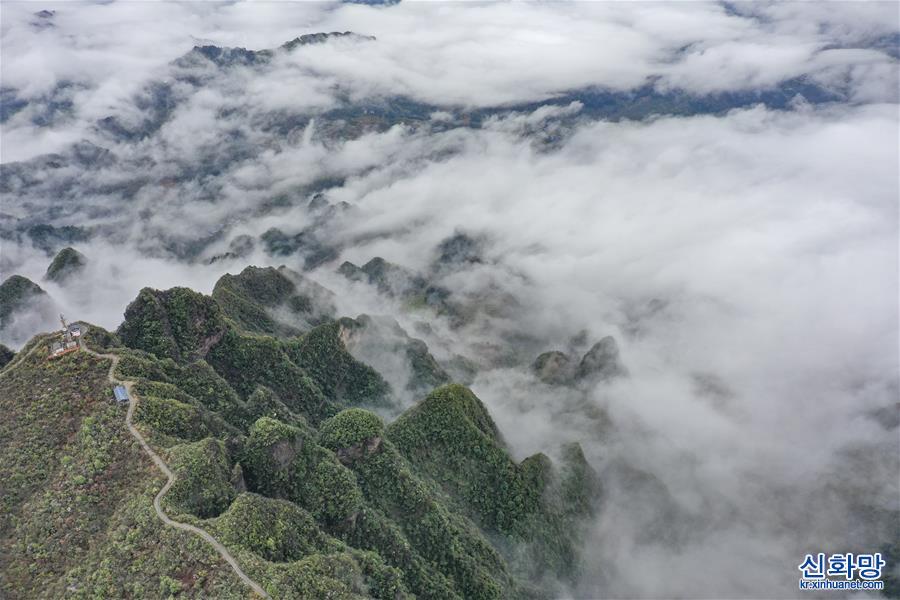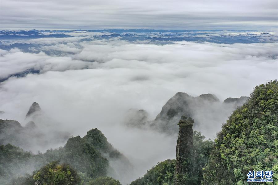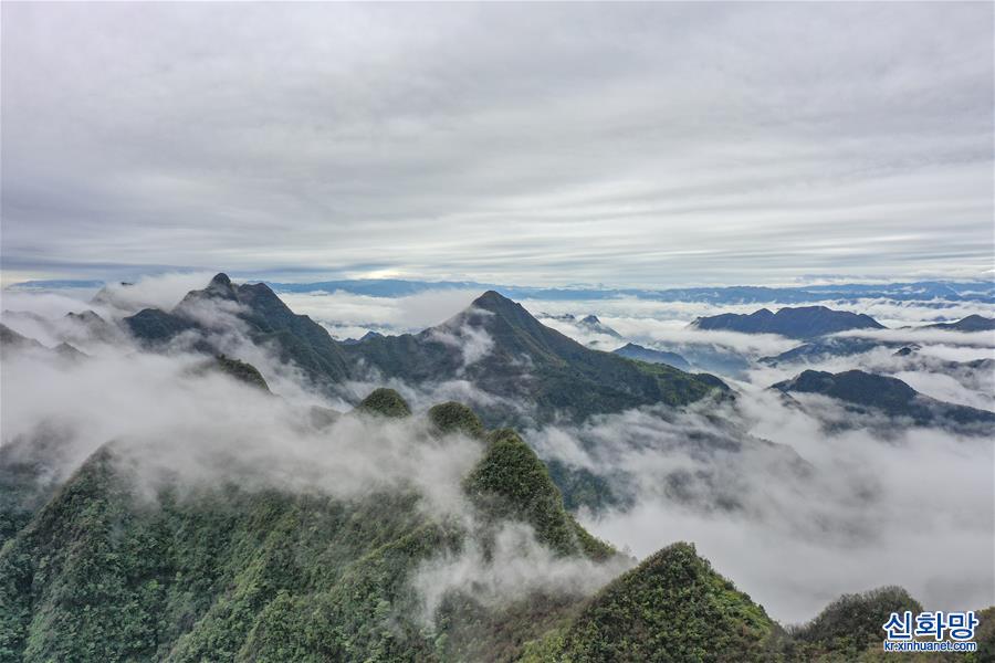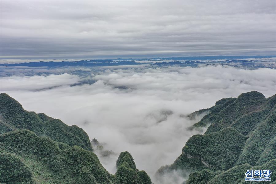 25일 중국 충칭시 슈산(秀山) 투자족먀오족자치현 융둥향에 있는 관광지 촨허가이(川河蓋)에 펼쳐진 운해가 아름다운 장관을 연출하고 있다. [촬영/신화사 기자 황웨이(黃偉)]