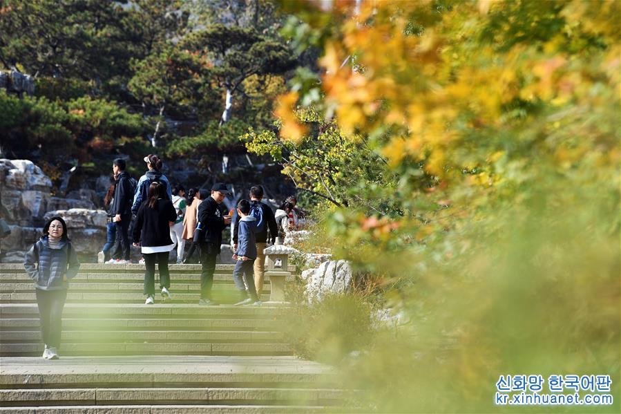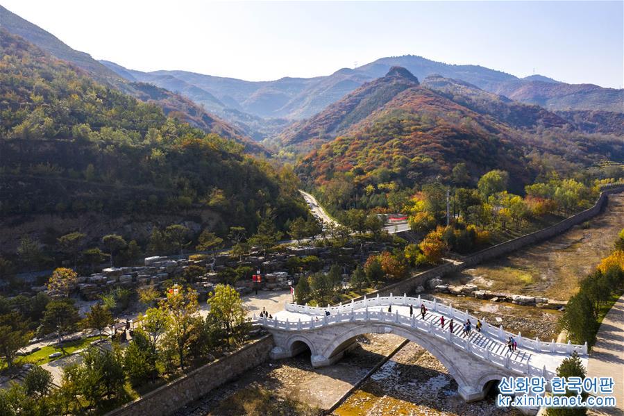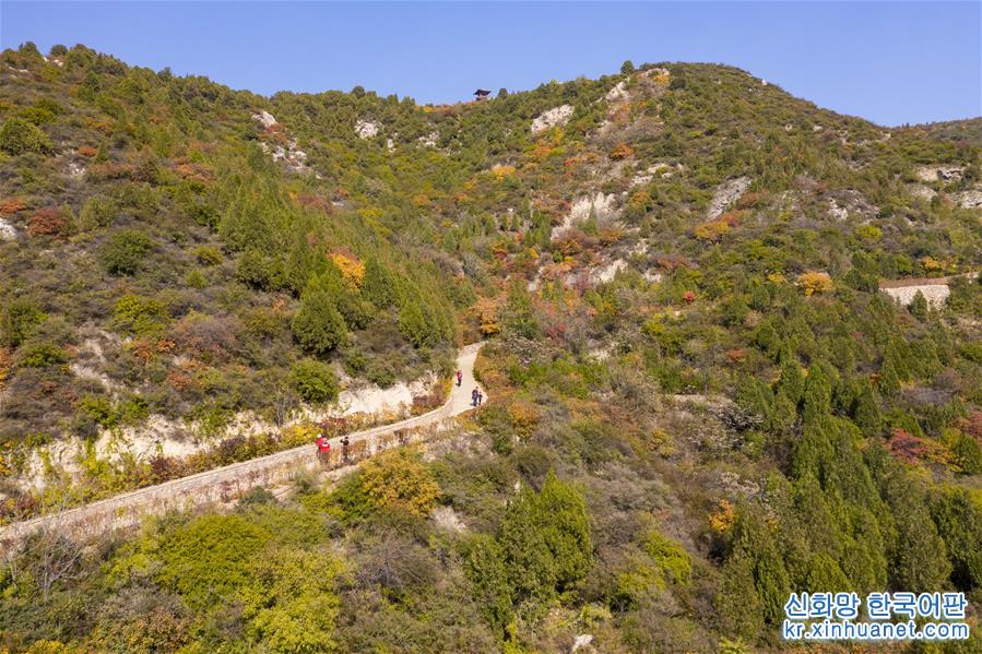 10월26일, 관광객이 타이산을 유람하고 있다.(드론 촬영) 풍요로운 수확의 계절, 산시(山西성) 타이위안(太原) 서남 방향에 위치한 타이산이 울긋불긋 단풍으로 곱게 물들었다. 매혹적인 가을 풍경이 많은 관광객의 발걸음을 이끌고 있다. [촬영/신화사 기자 양천광(楊晨光)]