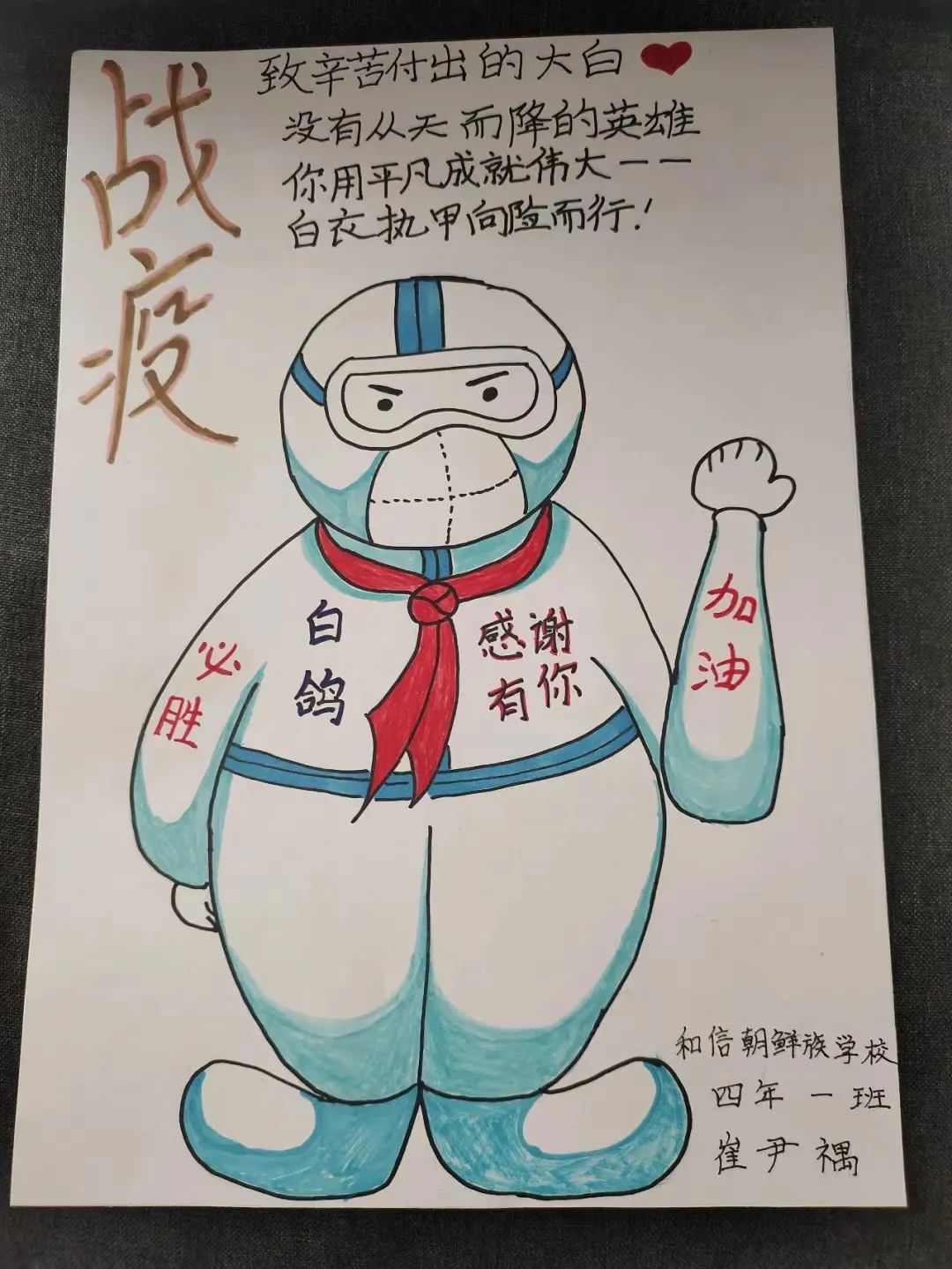 최근 심양시황고구조선족학교 소선대원들은 방역 일선에서 고군분투하고 있는 '백의영웅'들을 위해 뜻깊은 선물을 만들었다.