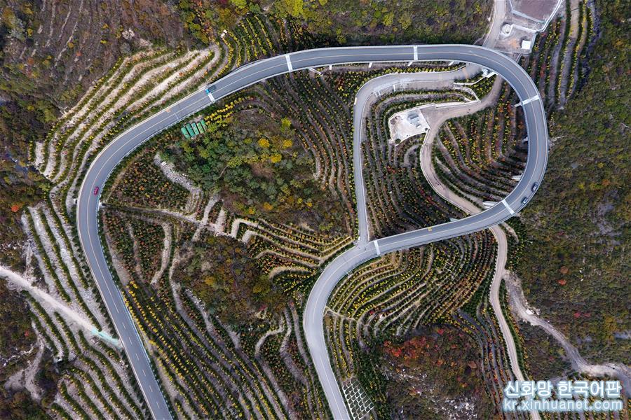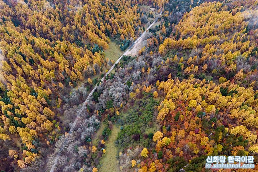 산시(山西)성 링스(靈石)현 경내의 타이웨(太岳)산 풍광(10월24일 드론 촬영)