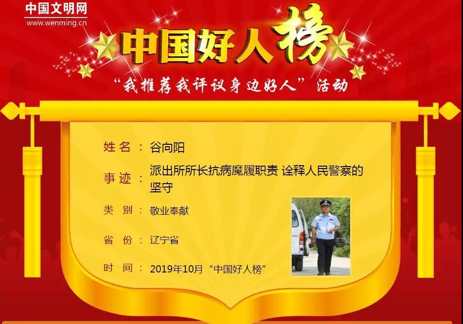 단동 경찰 곡향양이 2019년 10월에 “중국의 훌륭한 사람게시판”에 올라 “중국의 훌륳한 사람” 칭호를 받았다.