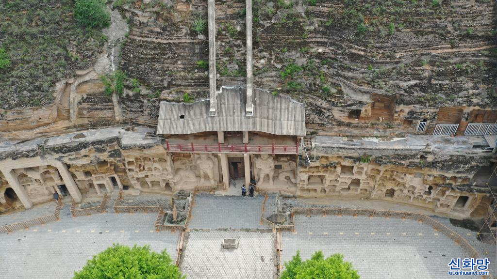 중국 간쑤(甘肅)성 칭양(慶陽)시에 위치한 천년고찰 베이스쿠사(北石窟寺∙북석굴사)사는 북위 영평2년(서기 509년)에 건립되었으며, 대대로 증축을 거쳐 석굴과 감실이 밀집한 석굴군을 형성하게 되었다. 현재 크고 작은 감실 308개, 석굴 조각상 2000여개가 있는 베이스쿠사는 중국 불교 석굴 예술에서 중요한 지위를 차지하고 있다.[촬영/신화사 기자 천빈(陳斌)]