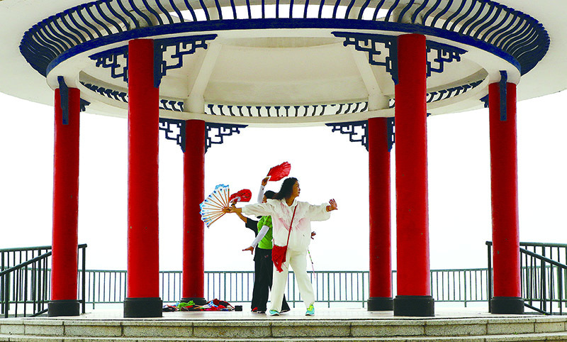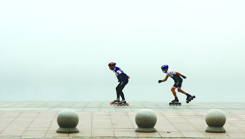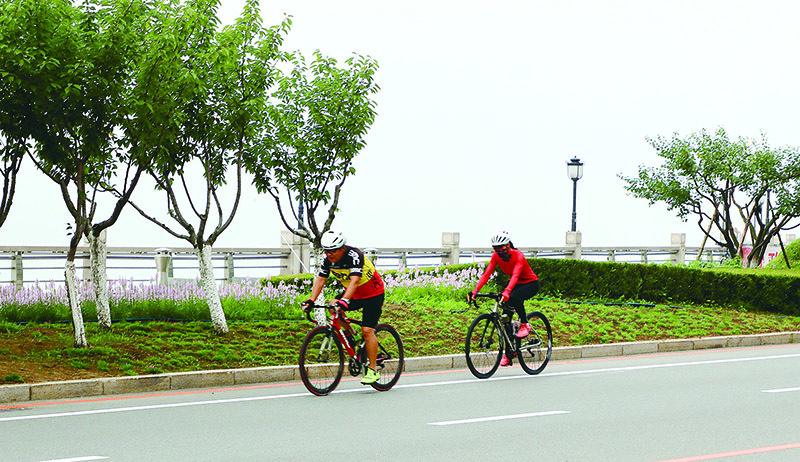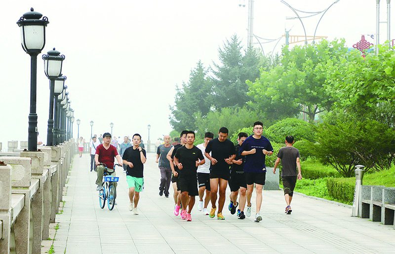 초가을에 들어서면서 빈강로(滨江路)의 대기가 청신하고 기온도 적당하여 사람들의 정신을 상쾌하게 한다. 단련하러 나온 시민들은 아침해살을 안고 달리거나 실안개속에서 자전거를 타거나 바람을 따라 로라스케트를 타거나 정자에서 태극부채를 흔들기도 한다... 운동하는 시민들의 모습은 압록강변에서 가장 활력이 넘치는 아름다운 풍경선으로 되였다. 건강한 몸매들은 아름다운 선률을 만들어내고 열정이 넘치는 얼굴마다에 행복한 미소가 어려있다.