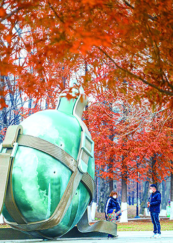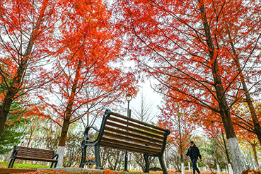 11월 9일, 단동시지원군공원안에는 대면적의 수삼나무가 붉은 바다인양 시민들앞에 펼쳐졌다.