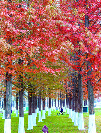 단동에는 금빛 은행나무뿐만 아니라 홰불을 방불케 하는수삼나무도 있다.