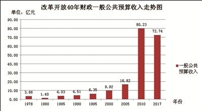 2017년, 전시 재정총수입은 120.6억원에 달해 1978년보다 30.7배로 년평균 9.3% 증가되였다. 전시의 일반공공예산수입은 1978년의 3.66억원에서 2017년의72.74억원으로 18.9배 늘어나 년평균 8.0% 증가되였다. 2017년 시 전체의 세금총수입은 91.4억원으로 1978년의 43.5배에 달했다. 재력이 부단히 증강되여 전시 경제건설과 사회진보의 강유력한 뒤받침이 되였다. 2017년 전시 지방재정지출은 208.9억원으로 1978년의 205배에 달해 년평균 14.6% 증가했다. 따라서 경제와 사회발전에 대한 정부의 통제능력이 날로 강화되였다.