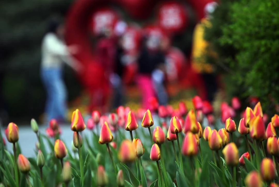 4월 25일, 심양 북릉공원의 튤립·영춘화·복숭아꽃·유채꽃·해당화·정향 등 화훼가 아름다움을 다투며 다가올 5.1절을 맞이하고 있었다.