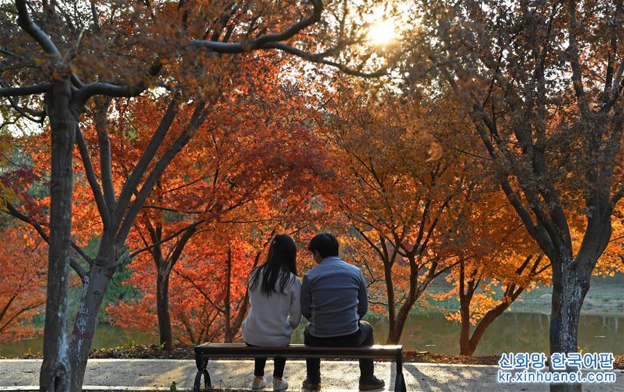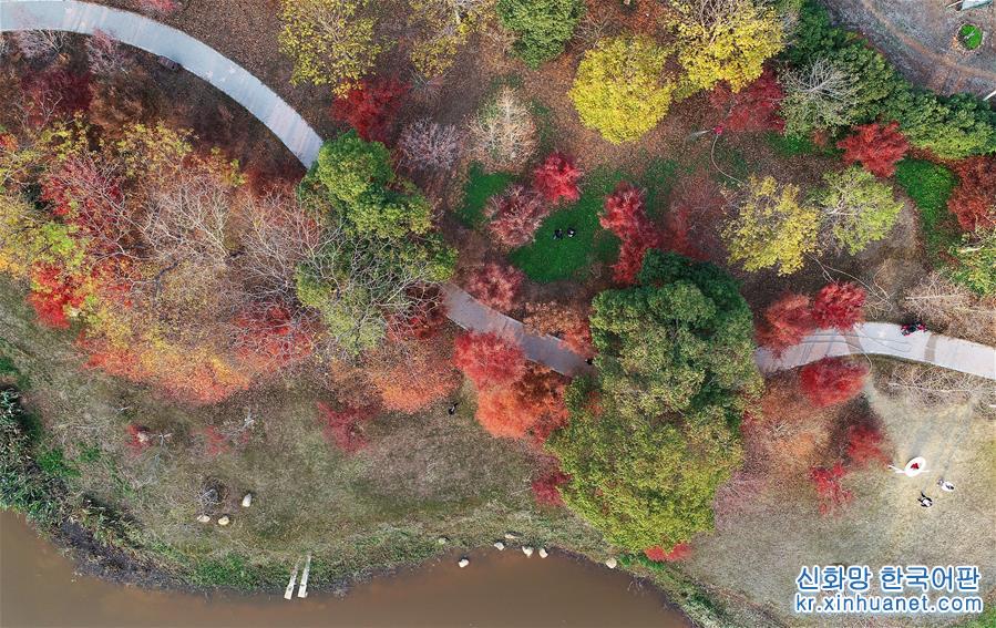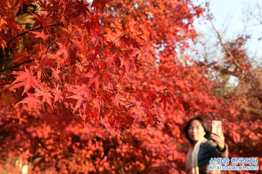 장시(江西)성 난창(南昌)현 펑황거우(鳳凰溝) 관광지 펑칭곡(1210일 드론 촬영) 장시성 난창현 펑황거우 관광지의 5000여 그루 단풍이 절정 시기를 맞으면서 붉은 ‘단풍’ 풍경이 관광객을 매료시키고 있다. [촬영/신화사 기자 완샹(萬象)]