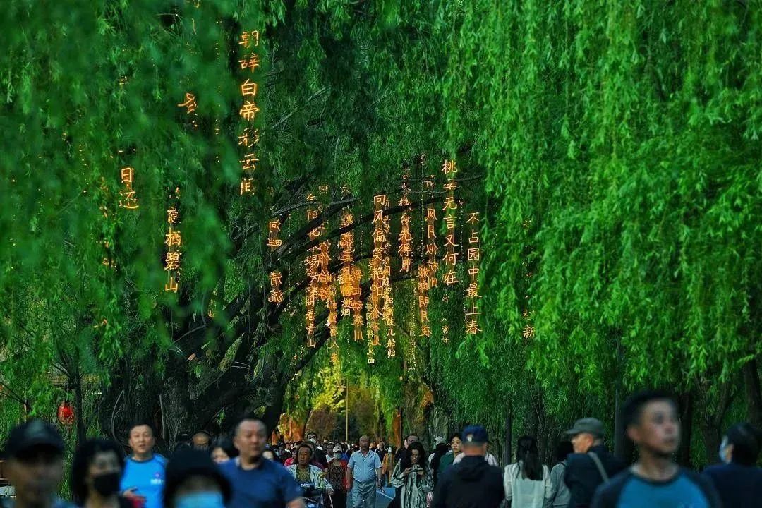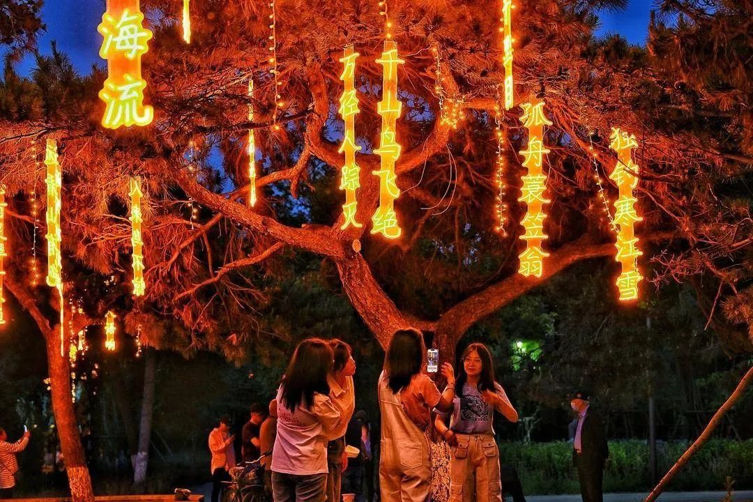 심양시 대동구 만천공원(万泉公园)은 최근 새로운 핫플레이스로 부상하고 있다. 공원 나무에 이색적인 ‘중국 고전 시사(诗词)’ 색등이 장식되면서 이곳은 매일매일 인증샷을 찍으러 온 시민들로 북새통을 이루고 있다.