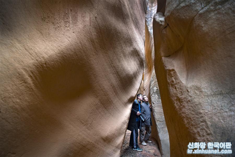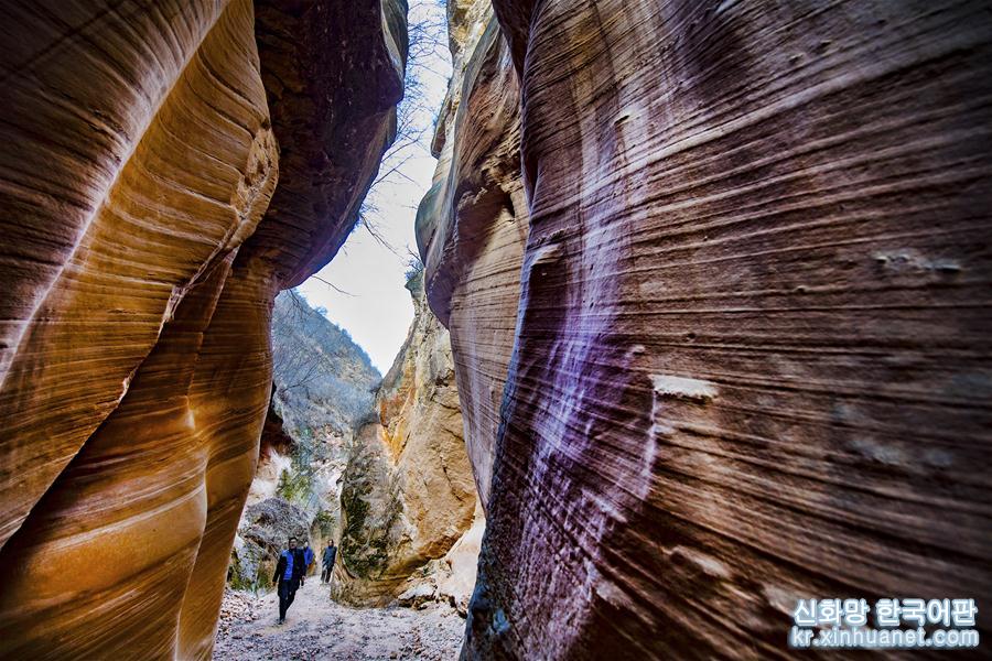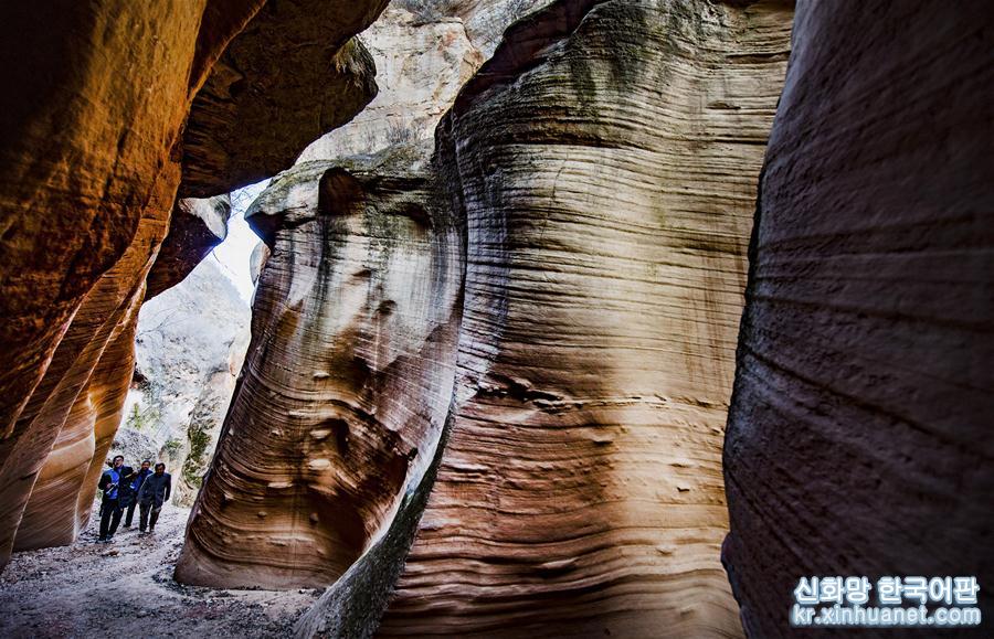 산시(陕西)성 옌안(延安)시 즈단현 솽허진 마오샹촌에 자리한 마오샹 협곡은 총 길이가 12km 이고 9개 구간으로 나뉜다. 구불구불하고 석벽이 울퉁불퉁하며 가장 좁은 곳은 한 사람이 몸을 옆으로 돌려야 통과할 수 있는 이 협곡은 황토고원의 기묘한 자연경관이라 할 수 있다. [촬영/ 신화사 기자 타오밍(陶明)]